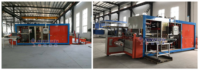 2. ACF系列大高速吸塑機。是市場上使用吸塑機型號,在自動化程度、產量、人工使用量、機器價格親民,較為容易接受的吸塑機設備。工藝步驟:卷材自動拉料、加熱、真空吸塑、整版裁切、裁斷機分切。