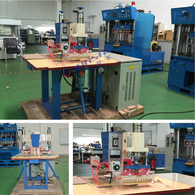 雙頭腳踏式高周波熔接機特別適用于難對位產品熔接,也可根據壓力需要選擇氣動裝置。高周波熔接機頭設計利用肘節推動杠桿原理,能使PVC熔接時壓力均勻,高頻機機頭壓力輕重可任意調節,以配合高周波熔接深淺的需要。