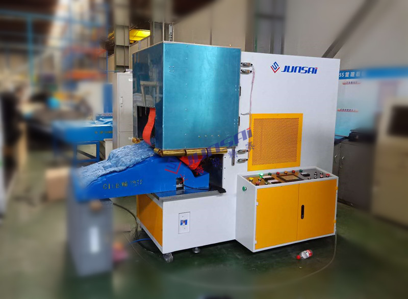 將生產所需生產的材料放入到指定位置,設備就可以自行運轉,防護罩下降,高頻焊接頭下降,冷卻上升。
